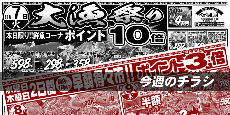 店舗情報 生鮮食品館 ベイ・はしば 守口市西郷通1-2-15 TEL. 6992-3155 営業時間 平日・土曜日・祝祭日:AM9:00~PM8:00 日曜日:AM9:00~PM7: