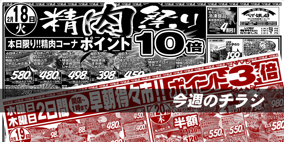 生鮮食品館 ベイ・はしば 守口市西郷通1-2-15 TEL. 6992-3155 営業時間 平日・土曜日・祝祭日:AM9:00~PM8:00 日曜日:AM9:00~PM7: