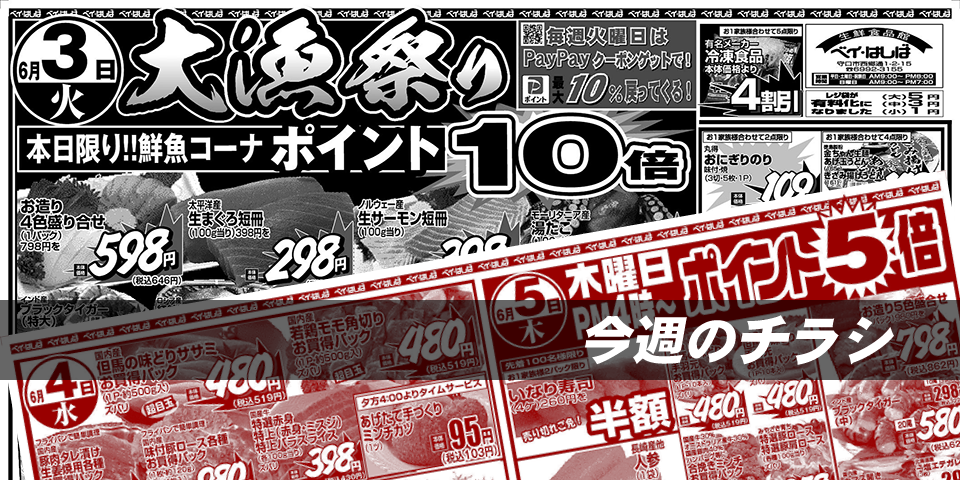 店舗情報 生鮮食品館 ベイ・はしば 守口市西郷通1-2-15 TEL. 6992-3155 営業時間 平日・土曜日・祝祭日:AM9:00~PM8:00 日曜日:AM9:00~PM7: