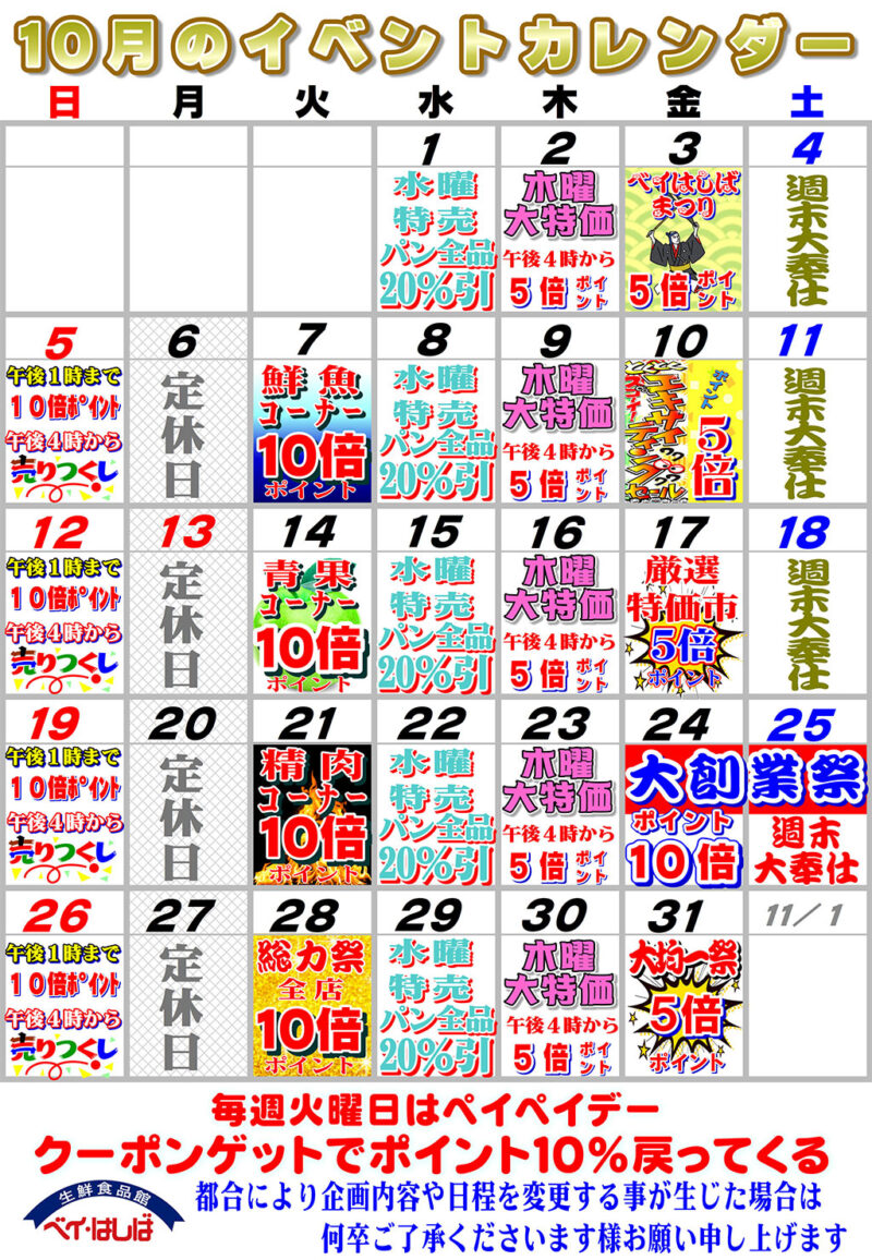 今月のイベントカレンダー(2025年10月)