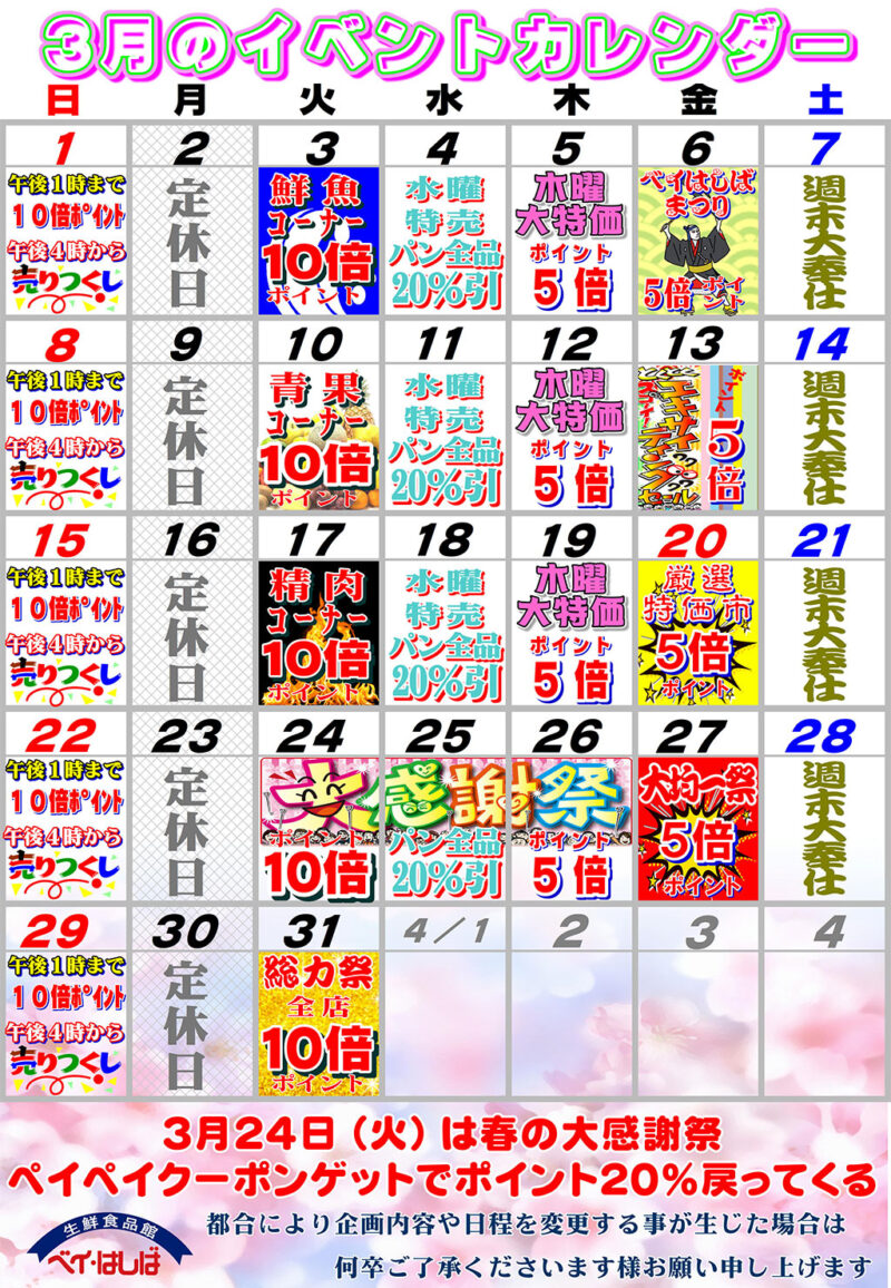 今月のイベントカレンダー(2026年3月)