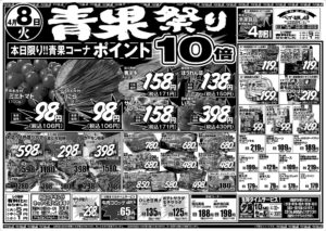 生鮮食品館 ベイ・はしば 守口市西郷通1-2-15 TEL. 6992-3155 営業時間 平日・土曜日・祝祭日:AM9:00~PM8:00 日曜日:AM9:00~PM7: