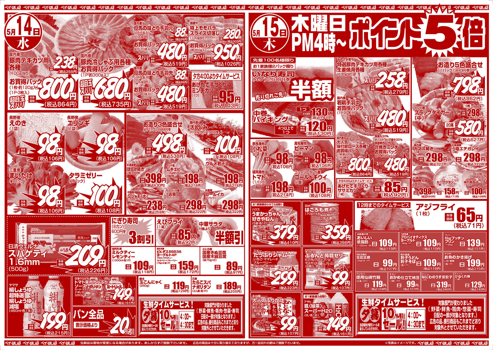 生鮮食品館 ベイ・はしば 守口市西郷通1-2-15 TEL. 6992-3155 営業時間 平日・土曜日・祝祭日:AM9:00~PM8:00 日曜日:AM9:00~PM7: