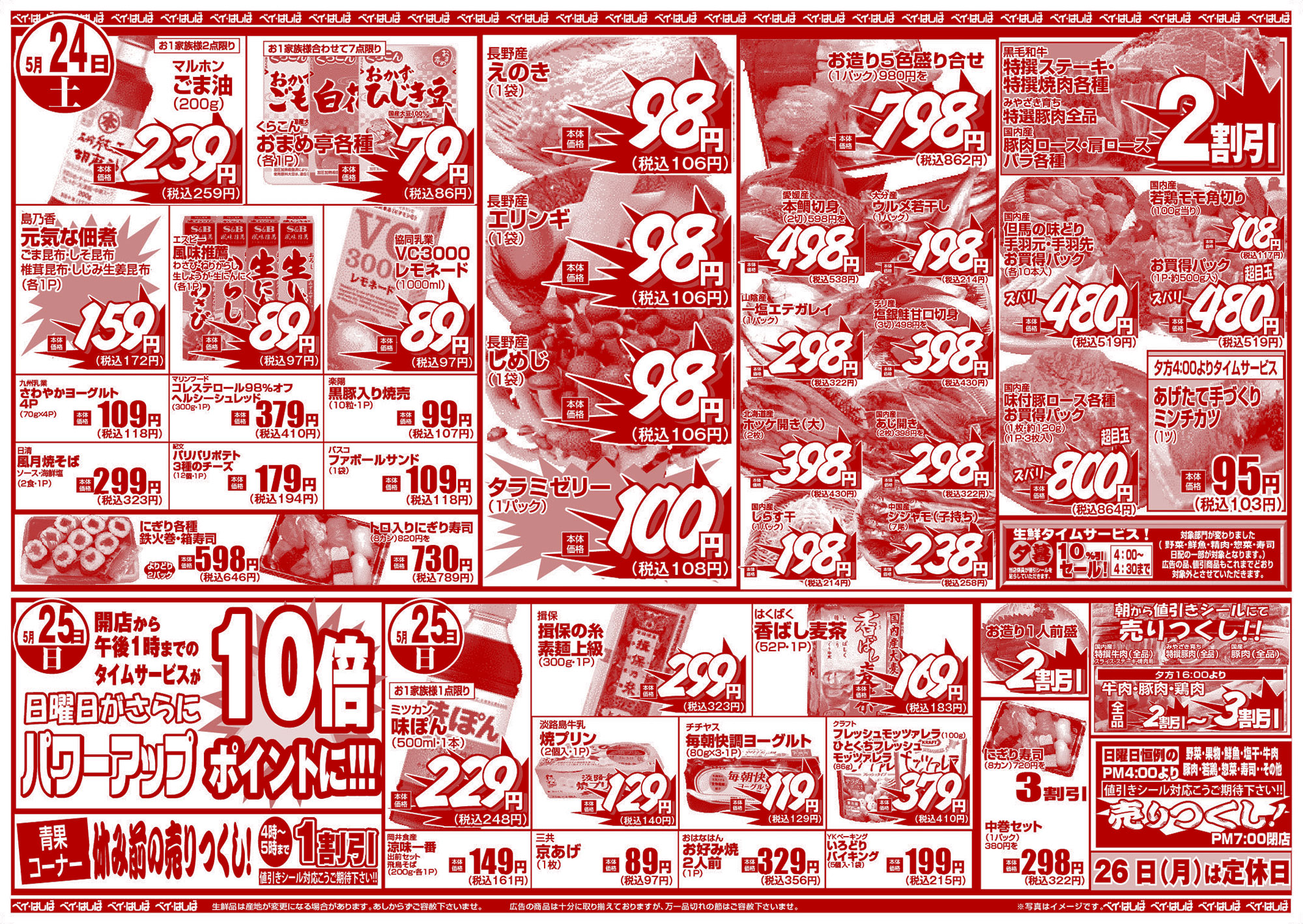 店舗情報 生鮮食品館 ベイ・はしば 守口市西郷通1-2-15 TEL. 6992-3155 営業時間 平日・土曜日・祝祭日:AM9:00~PM8:00 日曜日:AM9:00~PM7: