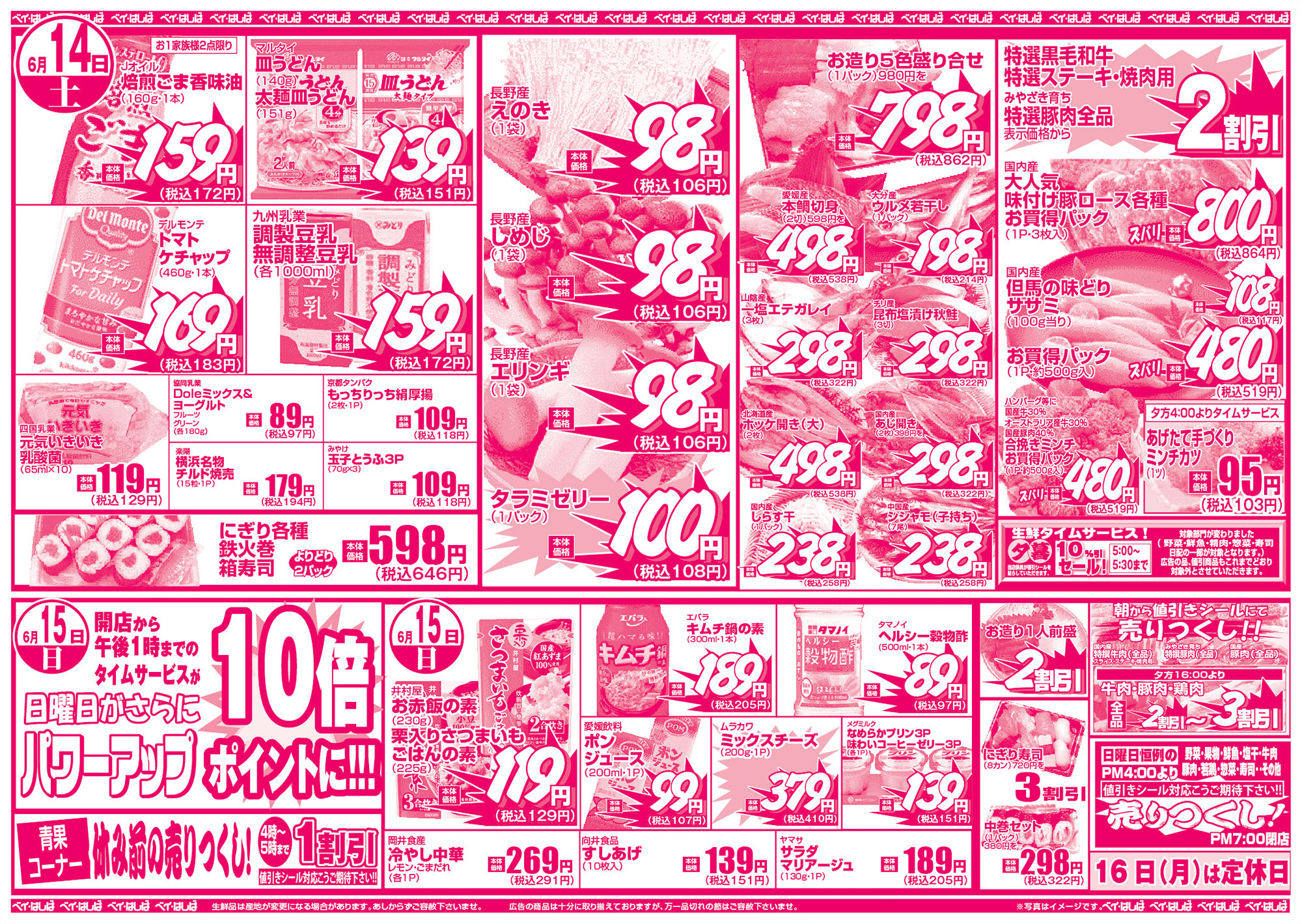 生鮮食品館 ベイ・はしば 守口市西郷通1-2-15 TEL. 6992-3155 営業時間 平日・土曜日・祝祭日:AM9:00~PM8:00 日曜日:AM9:00~PM7:
