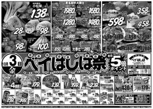 生鮮食品館 ベイ・はしば 守口市西郷通1-2-15 TEL. 6992-3155 営業時間 平日・土曜日・祝祭日:AM9:00~PM8:00 日曜日:AM9:00~PM7: