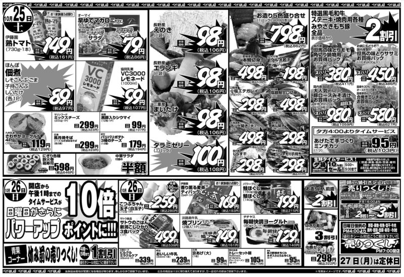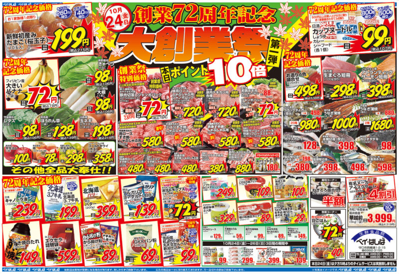店舗情報 生鮮食品館 ベイ・はしば 守口市西郷通1-2-15 TEL. 6992-3155 営業時間 平日・土曜日・祝祭日:AM9:00~PM8:00 日曜日:AM9:00~PM7: