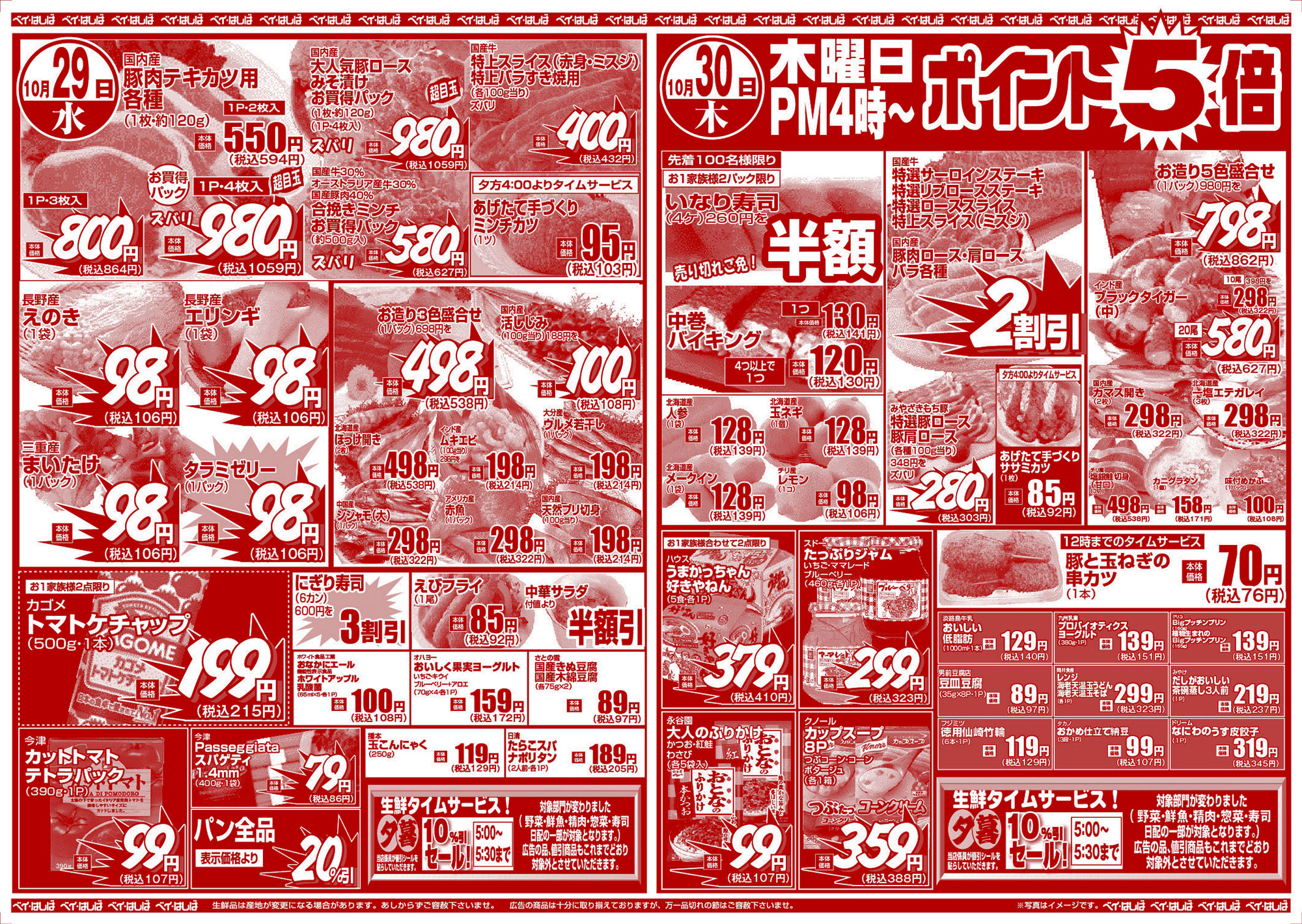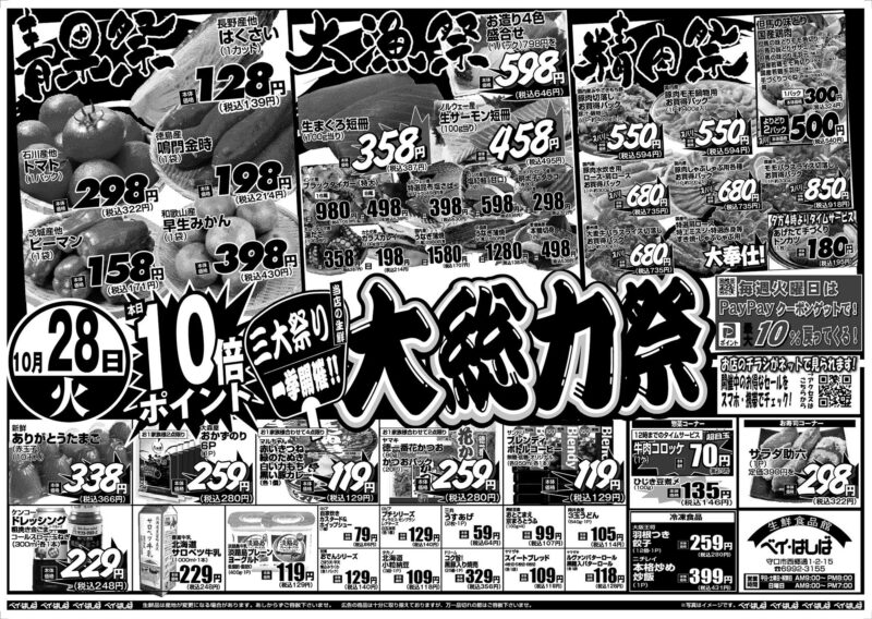 店舗情報 生鮮食品館 ベイ・はしば 守口市西郷通1-2-15 TEL. 6992-3155 営業時間 平日・土曜日・祝祭日:AM9:00~PM8:00 日曜日:AM9:00~PM7: