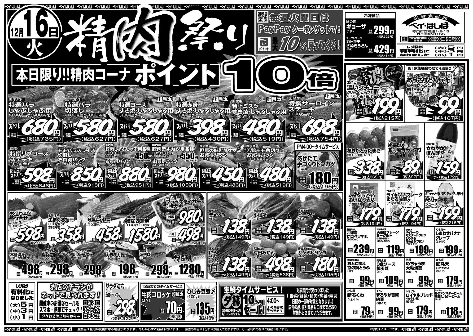 チラシ 今週のチラシ(2025年12月16日~12月18日) 投稿日:2025年12月14日 表面裏面 ※表面←→裏面を切り替えてご覧下さい。画像をクリックすると拡大表示になります。 ☆生鮮品は産地が変更になる場合があります。あしからずご容赦下さいませ。☆広告の商品は十分に取り揃えておりますが、万一品切れの節はご容赦下さいませ。※写真はイメージです。 -チラシ 執筆者:管理人