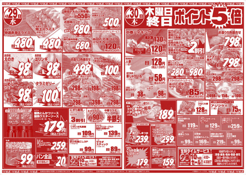 店舗情報 生鮮食品館 ベイ・はしば 守口市西郷通1-2-15 TEL. 6992-3155 営業時間 平日・土曜日・祝祭日:AM9:00~PM8:00 日曜日:AM9:00~PM7: